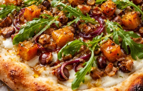 Crème fraiche, mozzarella Fior di Latte, butternut rôti, châtaigne grillé, oignon rouge, roquette, miel